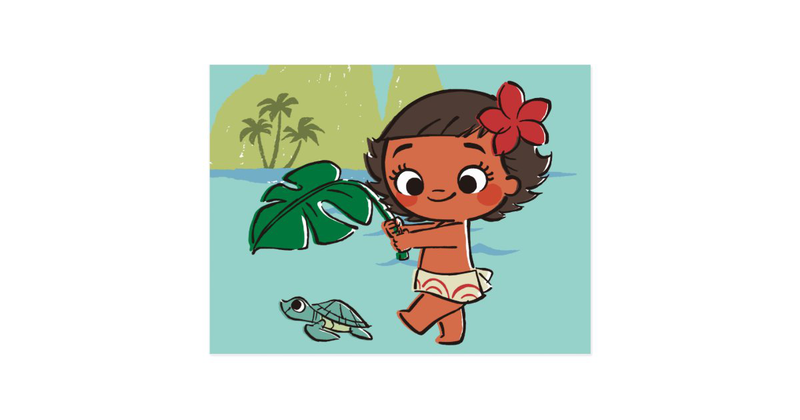 Moana is an ocean princess ' well maybe not in this vintage style design. This baby Moana is more a princess in training! A cute design to showcase her great love of the sea and islands. Chasing a turtle with a leaf, this adorable kids cartoon from the Disney classic will tug your heart strings and prove that she was born to be in the sea, looking out past the horizon like her ancestors!